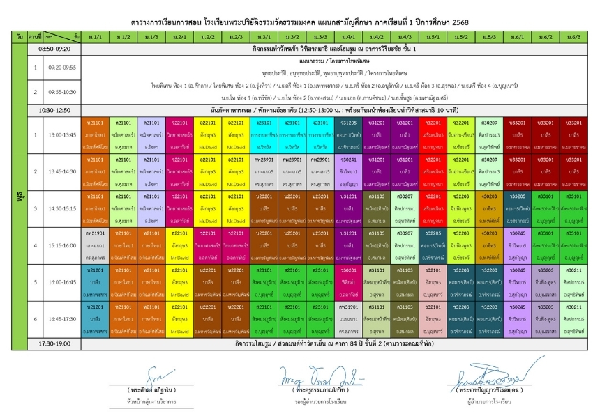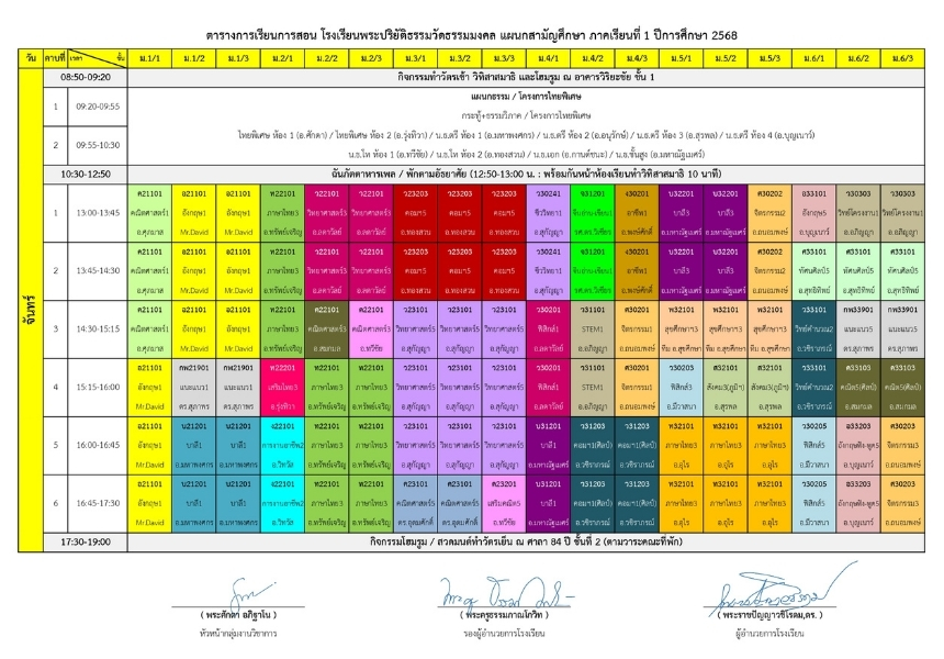 ตารางเรียน 1/2568 (แยกห้องเรียน)