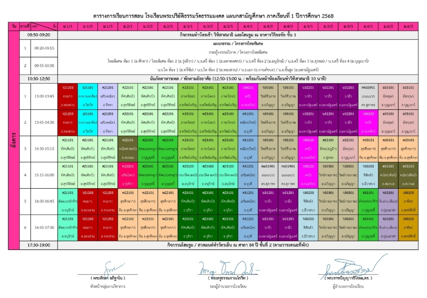 ตารางเรียน 1/2568 (แยกกลุ่มสาระ)