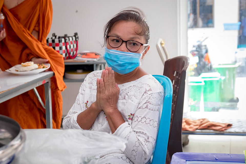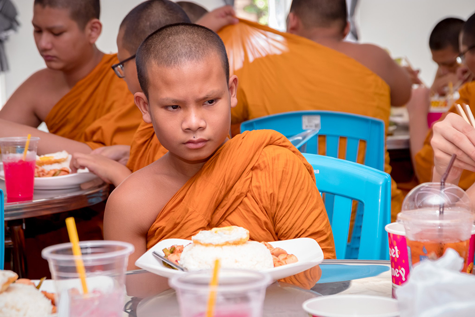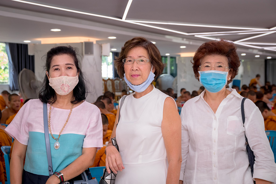 คณะศรัทธาญาติโยมที่ได้นำภัตตาหารเพลมาถวายสามเณรโรงเรียนพระปริยัติธรรมวัดธรรมมงคล