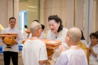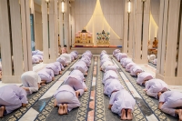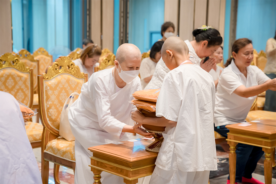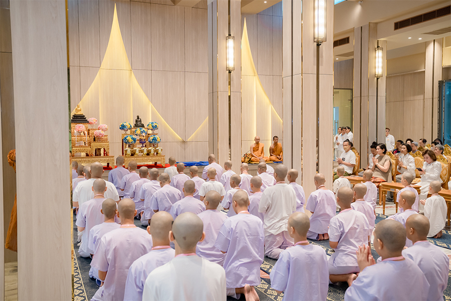 บรรยากาศการพิธีมอบบาตรผ้าไตรให้แก่นาค