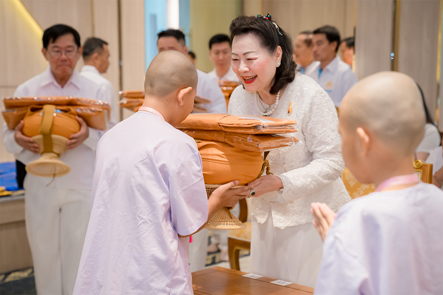 บรรยากาศการพิธีมอบบาตรผ้าไตรให้แก่นาค