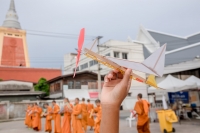 คณะศรัทธาญาติโยมที่ได้นำภัตตาหารเพลมาถวายสามเณรโรงเรียนพระปริยัติธรรมวัดธรรมมงคล