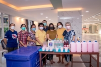คณะศรัทธาญาติโยมที่ได้นำหน้ากากอนามัยและยาอมมาถวายสามเณรโรงเรียนพระปริยัติธรรมวัดธรรมมงคล