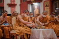 พิธีถวายมุทิตาสักการะ เนื่องในโอกาสพระบาทสมเด็จพระเจ้าอยู่หัว ทรงพระกรุณาโปรดพระราชทานตั้งเปรียญธรรม ๙ ประโยค และเปรียญธรรม ๖ ประโยค 14/10/63 วันพุธที่ 14 ตุลาคม พ.ศ. เวลา 19.00 น. พระภิกษุ สามเณร อุบาสกและอุบาสิกาพร้อมกัน ณ อุโบสถชั้นที่ 2 วัดธรรมมงคล เพื่อเข้าร่วมพิธี ถวายมุทิตาสักการะ เนื่องในโอกาสพระบาทสมเด็จพระเจ้าอยู่หัว ทรงพระกรุณาโปรดพระราชทานตั้งเปรียญธรรม ๙ ประโยค และเปรียญธรรม ๖ ประโยค มีกำหนดการดังต่อไปนี้ ผู้สอบได้เปรียญธรรม 6 ประโยคเดินทางขึ้นสู่อุโบสถชั้นที่ 2 พระสงฆ์ 10 รูป เจริญชัยมงคลคาถาขณะพัดยศเข้าสู่อุโบสถชั้นที่ 2) พระเทพสังวรญาณ เจ้าคณะกรุงเทพมหานคร - สมุทรปราการ (ธรรมยุต) ประธานสงฆ์ในพิธี จุดธูปเทียนบูชาพระรัตนตรัย จากนั้น พระครูสังฆกิจบรรหาร (กานต์ชนะ สนฺติกาโร) นามสำนักเรียนวัดธรรมมงคล พระครูปลัดสุวัฒนพรหมมงคลคุณ (เสริมพร ธมฺมวโร) ผู้ช่วยเจ้าอาวาสวัดศรีรัตนธรรมาราม พระมหาอภิชัย อภิชโย อาจารย์ใหญ่แผนกบาลีวัดศรีรัตนธรรมาราม พระมหากานต์ กนฺตสีโล พระมหาแก้วเพชรคณสิษฐ์ สติปญฺโญ อาจารย์ชูชาติ พูลเจริญ ถวายพานสักการะแด่ประธานสงฆ์ในพิธีตามลำดับ ต่อมาตัวแทนสาธุชน อ.ชูชาติ พูลเจริญ อ่านประกาศแต่งตั้งพระมหากานต์ กนฺตสีโล และพระมหาแก้วเพชรคณสิษฐ์ สติปญฺโญ เจ้าหน้าที่อาราธนาศีล ประธานสงฆ์ให้ศีล เจ้าหน้าที่อาราธนาพระปริตร พระสงฆ์ 10 รูปเจริญพระพุทธมนต์ (เสร็จแล้ว) ลำดับต่อมาพระเทพสังวรญาณ เจ้าคณะกรุงเทพมหานคร - สมุทรปราการ (ธรรมยุต) มอบของที่ระลึกแก่ผู้สอบได้เปรียญธรรม 6 ประโยค ตัวแทนสาธุชนเข้าถวายมุทิตสักการะผู้สอบได้เปรียญธรรม๖ประโยค จากนั้นพระเทพสังวรณาณเจ้าคณะกรุงเทพมหานคร - สมุทรปราการ (ธรรมยุต) กล่าวสัมโมทนียกถา ต่อมาพระมหากานต์ กนฺตสีโล พระมหาแก้วเพชรคณสิษฐ์ สติปญฺโญถวายครื่องไทยธรรมแด่ประธานสงฆ์ในพิธี สุดท้ายสาธุชนถวายเครื่องไทยธรรมแต่ประธานสงฆ์ในพิธี ตัวแทนสาธุชน 10 ท่าน ถวายเครื่องไทยธรรมแด่พระสงฆ์เจริญชัยมงคลคาถา 10 รูป พระสงฆ์ทั้งนั้นสวดอนุโมทนา พระเทพสังวรณาณเจ้าคณะกรุงเทพมหานคร-สมุทรปราการ (ธรรมยุต) เดินทางกลับเป็นอันเสร็จพิธี |