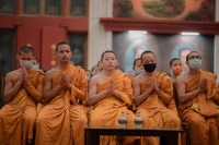 พิธีถวายมุทิตาสักการะ เนื่องในโอกาสพระบาทสมเด็จพระเจ้าอยู่หัว ทรงพระกรุณาโปรดพระราชทานตั้งเปรียญธรรม ๙ ประโยค และเปรียญธรรม ๖ ประโยค 14/10/63 วันพุธที่ 14 ตุลาคม พ.ศ. เวลา 19.00 น. พระภิกษุ สามเณร อุบาสกและอุบาสิกาพร้อมกัน ณ อุโบสถชั้นที่ 2 วัดธรรมมงคล เพื่อเข้าร่วมพิธี ถวายมุทิตาสักการะ เนื่องในโอกาสพระบาทสมเด็จพระเจ้าอยู่หัว ทรงพระกรุณาโปรดพระราชทานตั้งเปรียญธรรม ๙ ประโยค และเปรียญธรรม ๖ ประโยค มีกำหนดการดังต่อไปนี้ ผู้สอบได้เปรียญธรรม 6 ประโยคเดินทางขึ้นสู่อุโบสถชั้นที่ 2 พระสงฆ์ 10 รูป เจริญชัยมงคลคาถาขณะพัดยศเข้าสู่อุโบสถชั้นที่ 2) พระเทพสังวรญาณ เจ้าคณะกรุงเทพมหานคร - สมุทรปราการ (ธรรมยุต) ประธานสงฆ์ในพิธี จุดธูปเทียนบูชาพระรัตนตรัย จากนั้น พระครูสังฆกิจบรรหาร (กานต์ชนะ สนฺติกาโร) นามสำนักเรียนวัดธรรมมงคล พระครูปลัดสุวัฒนพรหมมงคลคุณ (เสริมพร ธมฺมวโร) ผู้ช่วยเจ้าอาวาสวัดศรีรัตนธรรมาราม พระมหาอภิชัย อภิชโย อาจารย์ใหญ่แผนกบาลีวัดศรีรัตนธรรมาราม พระมหากานต์ กนฺตสีโล พระมหาแก้วเพชรคณสิษฐ์ สติปญฺโญ อาจารย์ชูชาติ พูลเจริญ ถวายพานสักการะแด่ประธานสงฆ์ในพิธีตามลำดับ ต่อมาตัวแทนสาธุชน อ.ชูชาติ พูลเจริญ อ่านประกาศแต่งตั้งพระมหากานต์ กนฺตสีโล และพระมหาแก้วเพชรคณสิษฐ์ สติปญฺโญ เจ้าหน้าที่อาราธนาศีล ประธานสงฆ์ให้ศีล เจ้าหน้าที่อาราธนาพระปริตร พระสงฆ์ 10 รูปเจริญพระพุทธมนต์ (เสร็จแล้ว) ลำดับต่อมาพระเทพสังวรญาณ เจ้าคณะกรุงเทพมหานคร - สมุทรปราการ (ธรรมยุต) มอบของที่ระลึกแก่ผู้สอบได้เปรียญธรรม 6 ประโยค ตัวแทนสาธุชนเข้าถวายมุทิตสักการะผู้สอบได้เปรียญธรรม๖ประโยค จากนั้นพระเทพสังวรณาณเจ้าคณะกรุงเทพมหานคร - สมุทรปราการ (ธรรมยุต) กล่าวสัมโมทนียกถา ต่อมาพระมหากานต์ กนฺตสีโล พระมหาแก้วเพชรคณสิษฐ์ สติปญฺโญถวายครื่องไทยธรรมแด่ประธานสงฆ์ในพิธี สุดท้ายสาธุชนถวายเครื่องไทยธรรมแต่ประธานสงฆ์ในพิธี ตัวแทนสาธุชน 10 ท่าน ถวายเครื่องไทยธรรมแด่พระสงฆ์เจริญชัยมงคลคาถา 10 รูป พระสงฆ์ทั้งนั้นสวดอนุโมทนา พระเทพสังวรณาณเจ้าคณะกรุงเทพมหานคร-สมุทรปราการ (ธรรมยุต) เดินทางกลับเป็นอันเสร็จพิธี |