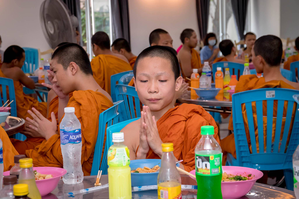 เจ้าภาพถวายภัตตาหารเพล "คณะอิ่มบุญ-สุขใจ"คณะสายบุญจากสมุทรสาคร