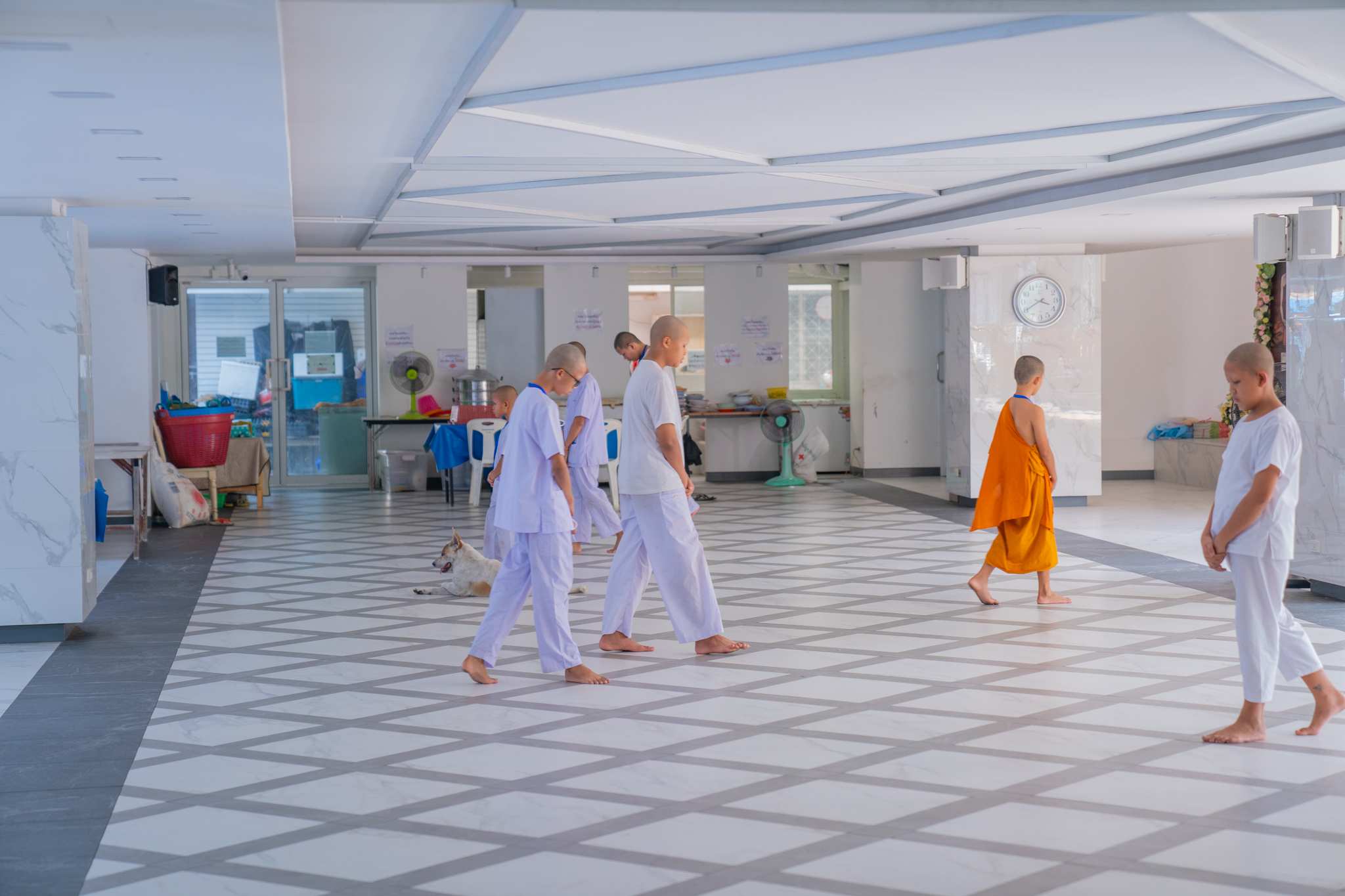 บรรยากาศการปฏิบัติธรรม เดินจงกรม ของสามเณรและพ่อขาว ปีการศึกษา 2566