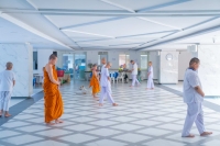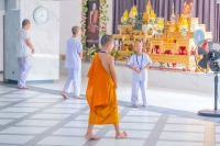 บรรยากาศการปฏิบัติธรรม เดินจงกรม ของสามเณรและพ่อขาว ผู้ซึ่งจะเป็นนักเรียนใหม่ นำเดินจงกลมโดยพระอาจารย์อนุรักษ์ อภิธมฺโม ครูโรงเรียนพระปริยัติธรรมวัดธรรมมงคล |