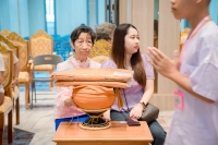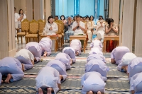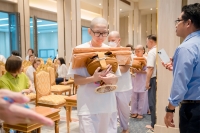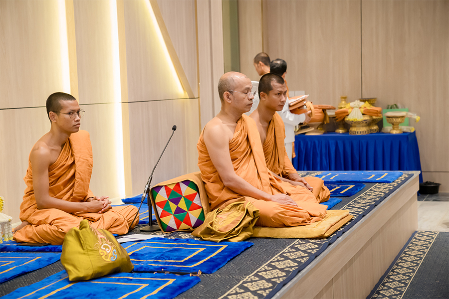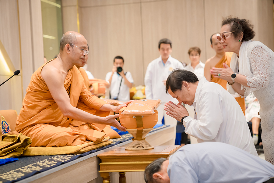 บรรยากาศการพิธีมอบบาตรผ้าไตรให้แก่นาค