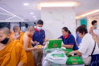 เจ้าภาพถวายภัตตาหารเพล "คณะอิ่มบุญ-สุขใจ"คณะสายบุญจากสมุทรสาคร