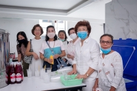 คณะศรัทธาญาติโยมที่ได้นำหน้ากากอนามัยและยาอมมาถวายสามเณรโรงเรียนพระปริยัติธรรมวัดธรรมมงคล