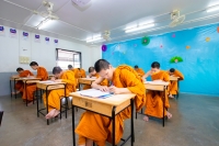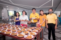 คณะศรัทธาญาติโยมที่ได้นำภัตตาหารเพลมาถวายสามเณรโรงเรียนพระปริยัติธรรมวัดธรรมมงคล